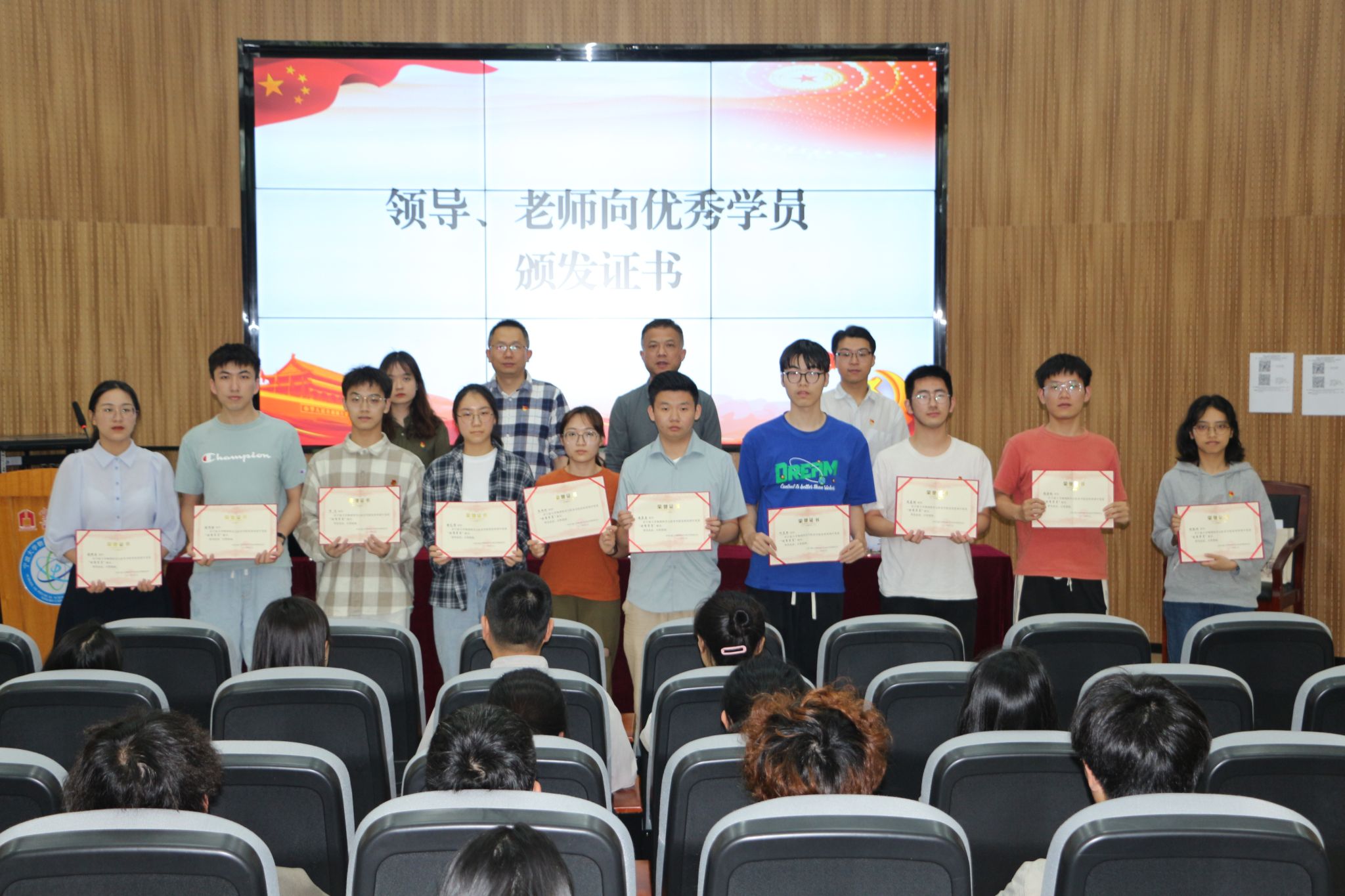 朱学庆书记和与会老师为羊言、路集善、张新云等10名优秀学员颁发荣誉证书。本科生第一党支部羊言作为积极分子培训班班长发言,他表示将继续向优秀的共产党员看齐,坚守初心使命,真正成为有理想、有方向、敢创新、能实干的物理人。本科生第二党支部路集善作为优秀学员代表分享学习感悟,他表示将在“科学家精神”的引领下勇攀科学高峰、秉持科学精神、塑造清廉品格、拓宽知识视野、服务社会青春,全力以赴共筑中国梦。优秀发展对象、“启明星”科普宣讲团成员张新云做《拓荒爆炸力学,科研为国为民》微党课展演,以生动的讲演形式阐述了郑哲敏先生在力学的道路上的人生轨迹,号召学员们以自强不息的精神攀登、书写奋斗青春。