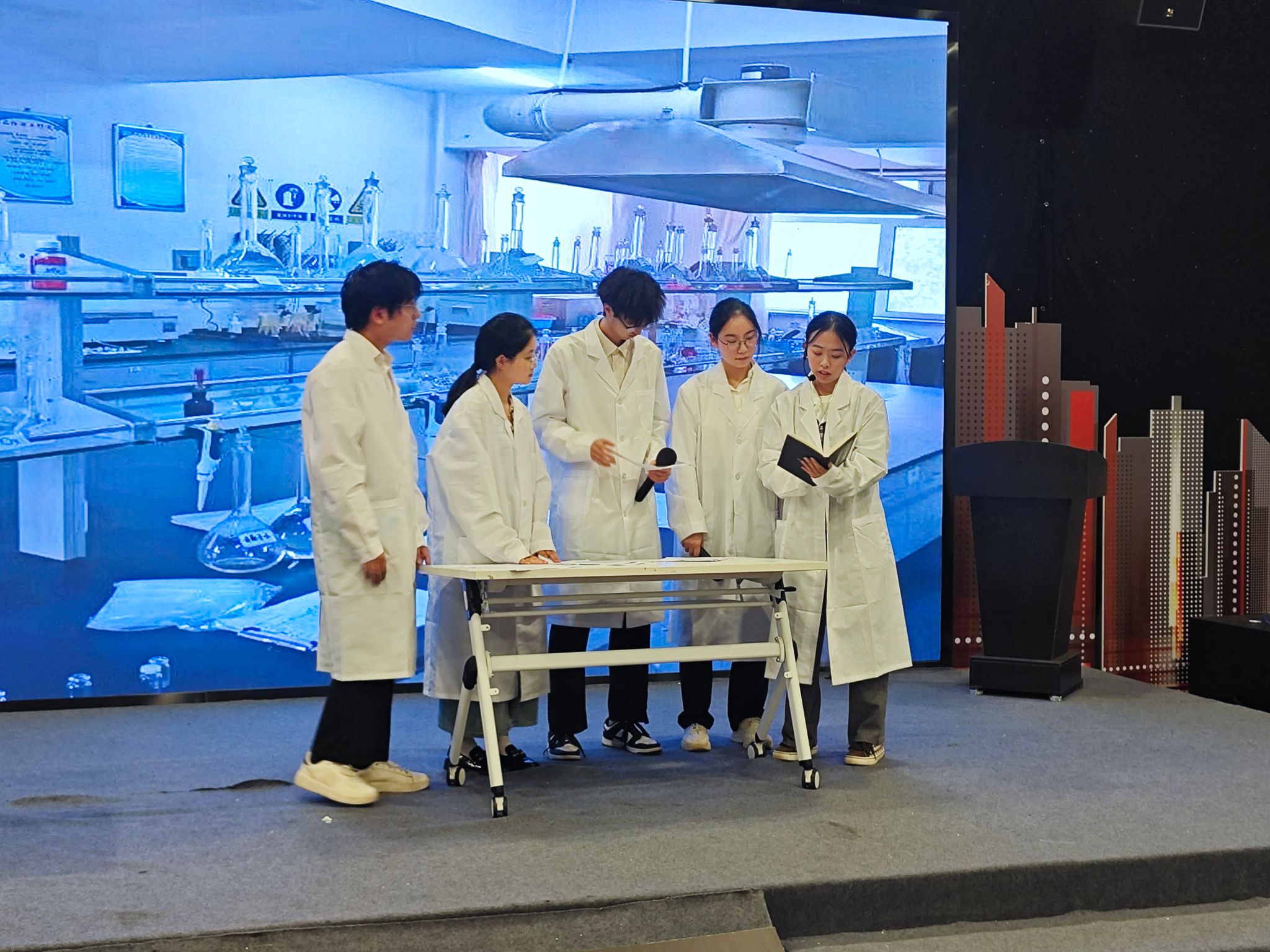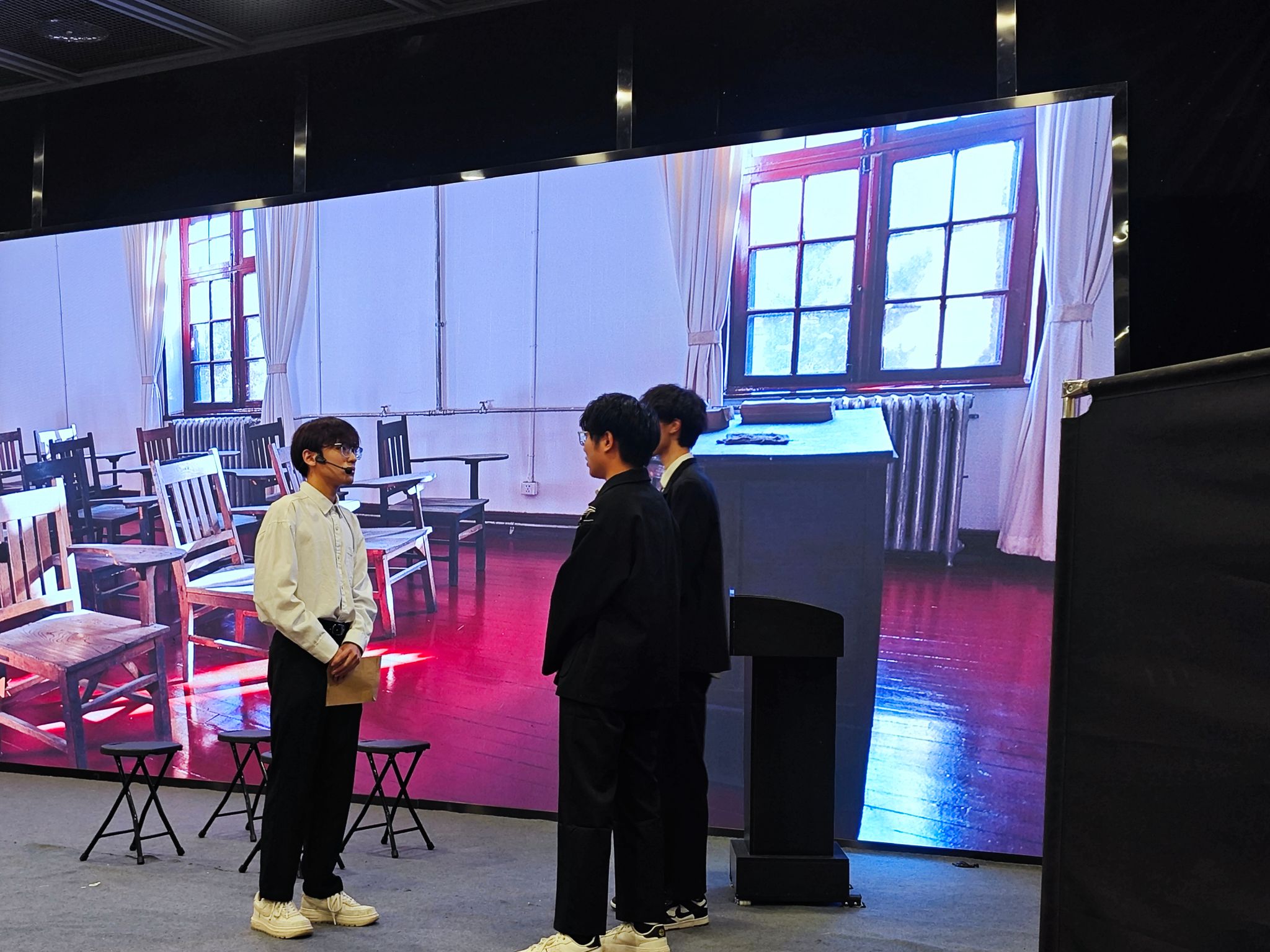 在前期筹备阶段,话剧团队精心策划剧本,深入挖掘科学史上的经典故事与人物,力求还原鲜活的角色和生动的情节。经过数天的排练与打磨,剧本实现了物理知识与人文情怀的跨学科融合,展现出了宁波籍科学家探索未知的勇气与智慧以及深切的爱国情怀。