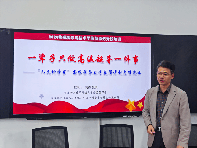 11月11日,党委委员高淼老师详细介绍了科学家赵忠贤院士在科研道路上的艰辛探索与不懈追求。赵院士几十年如一日,坚守在科研一线,为我国超导事业的发展做出了卓越贡献,学员们从中深受鼓舞,从科学家的坚守与奉献中汲取精神力量。