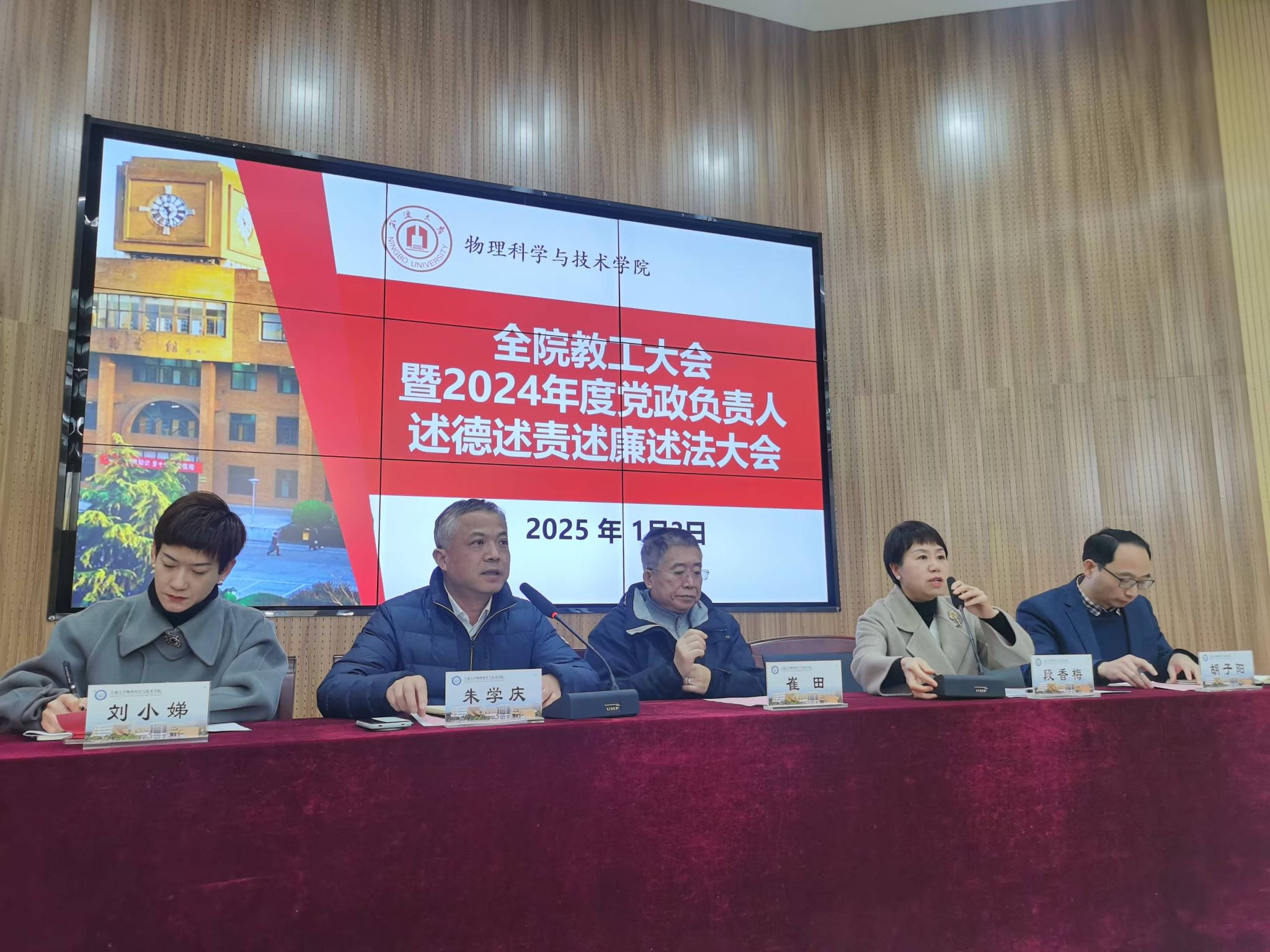 会议开始,执行院长段香梅代表成人av 领导班子就2024年度成人av 工作进行了全面汇报。汇报从多个维度出发,包括,学科建设、师资队伍、教研教改、人才培养、国际合作与地方服务等,详尽地汇报了在过去一年里成人av 亮点工作和取得的成绩,以及成人av 发展存在的问题及对策。朱学庆汇报了2024年度成人av 党建工作成效,对物理系教师党支部入选浙江省第四批高校党建“双创”样板支部培育创建单位表示祝贺。同时,布置了成人av 近期安全稳定工作任务,再次强调党风廉政建设的重要性,要求全体教职员工要身体力行,持续推进清廉物院建设。