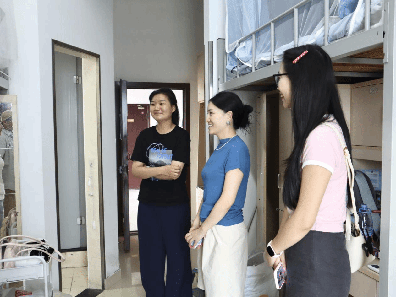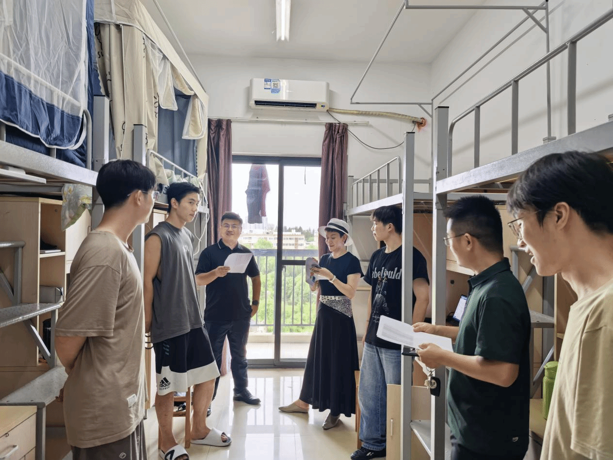 下午时分,成人av 的温暖主线从公共空间延伸至学生生活的“最小单元”。由成人av 学生工作负责人刘小娣、班主任刘召、研究生秘书和辅导员组成的走访团队,深入2025级研究生新生所在的宿舍,开展寝室走访活动。