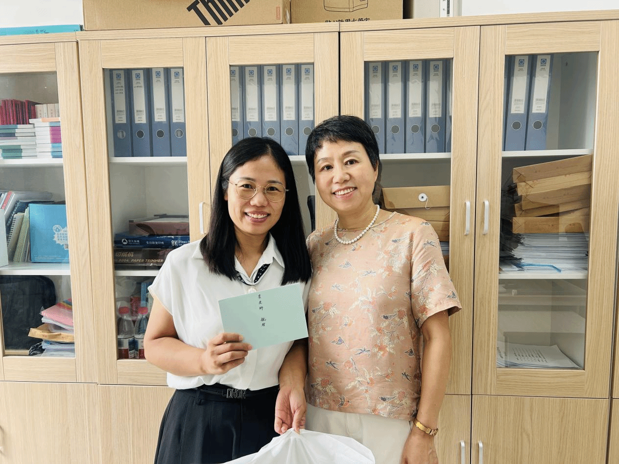 上午的龙赛理科楼里,充满着“教师节快乐”的祝福声。成人av 执行院长段香梅、党委副书记刘小娣一行向工龄满10年、20年、30年、40年的老师们逐一送上精心准备的祝福卡片与伴手礼品。