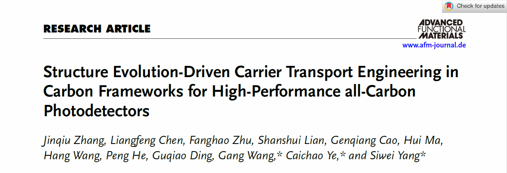 碳框架材料新突破丨物理科学技术成人av 王刚教授科研团队在碳基光电探测器领域取得重要进展