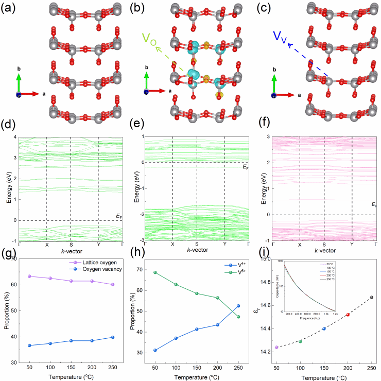 作为代表性器件,反式钙钛矿太阳电池通常具有p-i-n构型的能带结构,其中作为空穴传输层的p层、作为电子传输层的n层和作为光吸收层的i层分别通常为NiOxp型半导体材料、C60n型半导体材料和非故意掺杂的金属卤化物钙钛矿材料。纳米晶NiOx被广泛用作空穴传输层,但其合成技术复杂,抗反向击穿能力有限,制约了高稳定器件的发展。同样作为过渡金属氧化物的V2O5OPV、OLED等有机光电子学领域广为报道,该研究采用水溶性V2O5-x替代纳米晶NiOx。然而,在这些工作中具有氧空位的V2O5-x通常被报道为p型半导体,因此常认为是作为空穴传输层,这是基于其功函数较大的事实做出的推断,也因此相关器件工作原理比较简单明了。