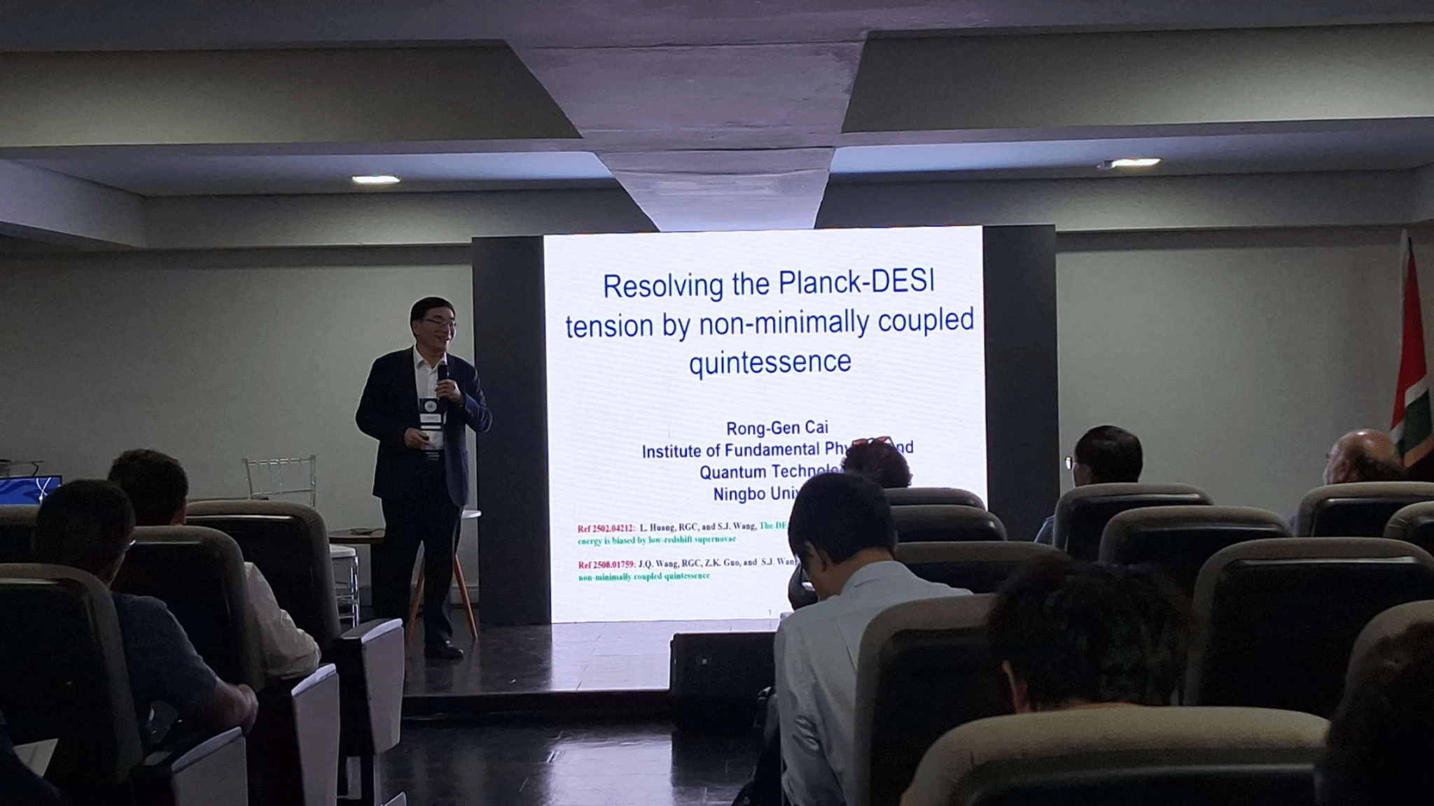 会议期间,成人av 代表团围绕引力波与宇宙学、黑洞时空与观测检验等方向开展专题交流,并在大会报告环节作学术报告,集中展示宁大在引力与宇宙学领域的研究基础与学术影响力。