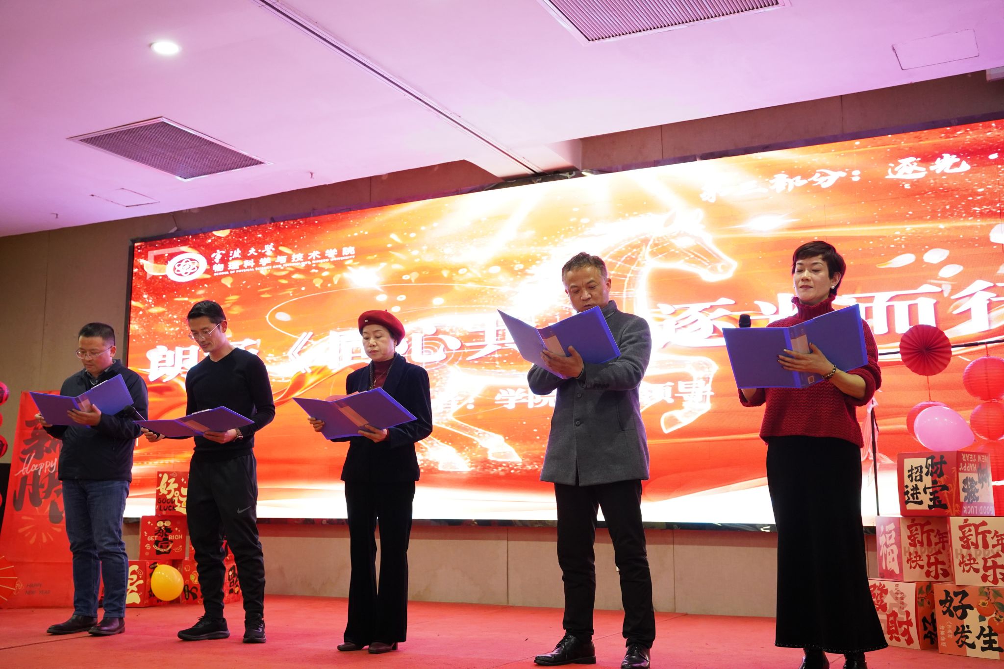 恰逢农历马年,“学院有马”环节特意为属马的教职工集体庆生,学院领导送上定制的生日蛋糕,现场暖意融融,欢声笑语不断。