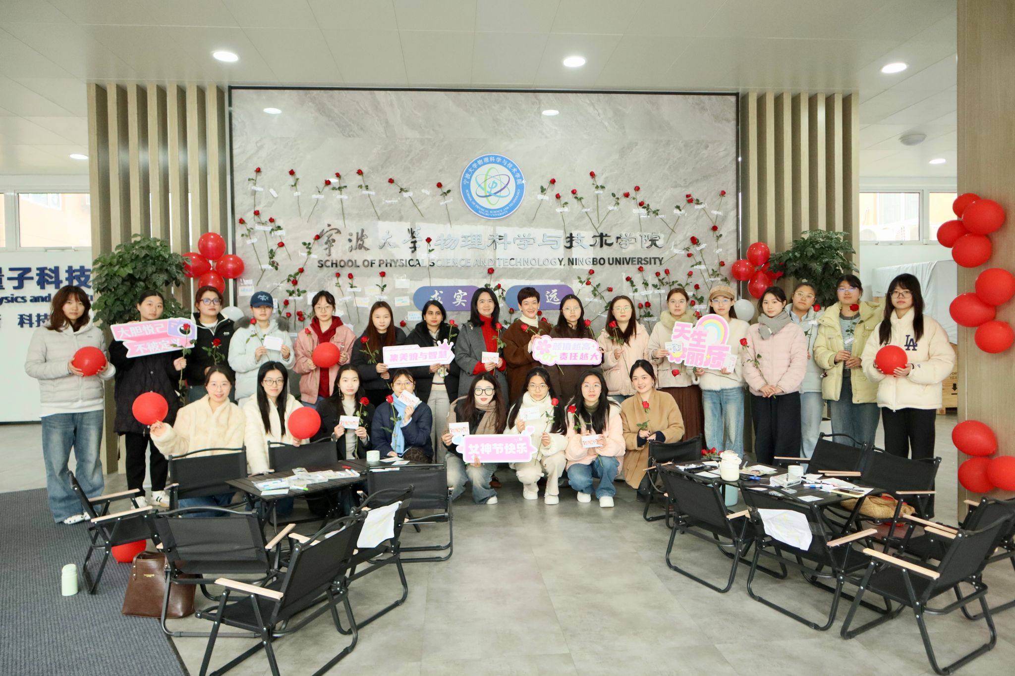 3月6日,成人av 在龙赛理科楼正大门开展“心花·怒放”女生节主题活动,活动以“用玫瑰换一封写给自己的情书”为创意,吸引了学院众多女教师、女学生积极参与,为春日校园增添了一抹温暖亮色。