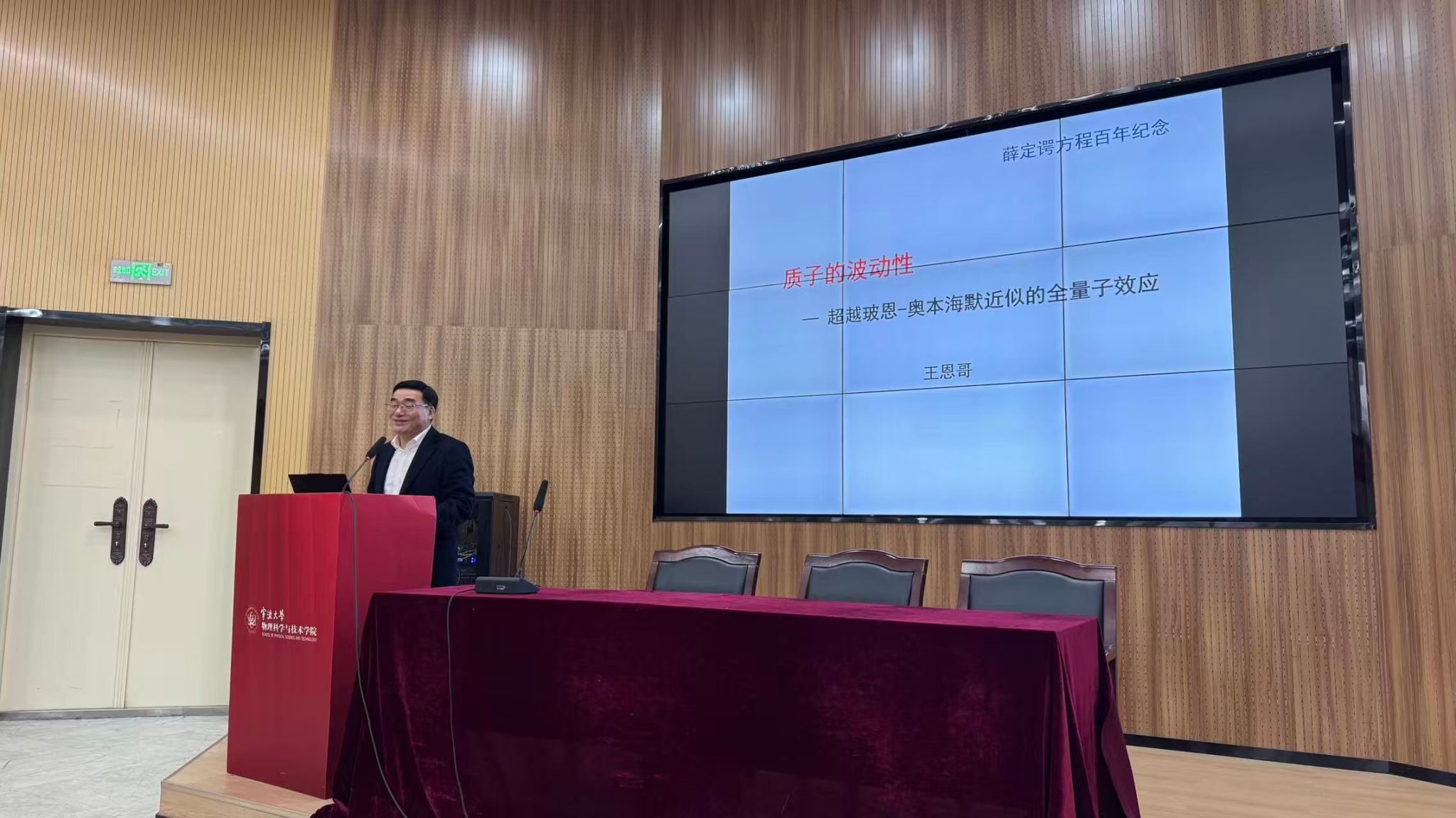 王恩哥院士首先从微观世界的基本图景出发,系统阐述了量子实在同时具有波粒二象性的基本特征。在传统的玻恩-奥本海默近似框架下,凝聚态体系通常将电子视为具有波动性的量子对象,而将原子核视为经典粒子处理。在此基础上,他引入“全量子效应”这一重要物理概念,重点探讨了质量最接近电子的原子核——质子的量子行为,分析其量子化处理可能带来的新物理现象与科学发现。