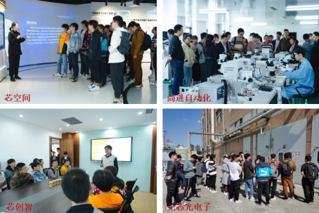 在参观芯创智创新设计服务中心时,师生们不仅了解了芯创智的经营及团队情况,还听取了在芯创智工作的物理成人av 校友们的工作经验分享,并与芯创智的技术总监面对面交流。而后,参观了宁波元芯光电子科技有限公司,了解了企业的基本情况、光通讯产品的应用领域以及其车间的功能。