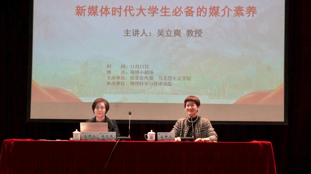 11月12日上午,校党委宣传部常务副部长吴立爽为成人av 300余位师生主讲题为《新媒体时代大学生必备的媒介素养》的形势政策课。本次课程由院党委副书记刘小娣主持。