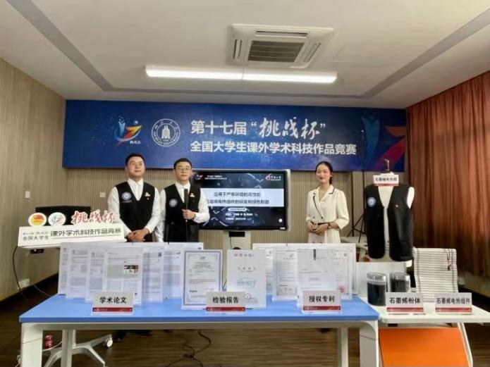 2022年3月26日至28日,在由共青团中央、教育部、中国科协、中国社会科成人av 、全国学联、四川省人民政府共同主办的第十七届“挑战杯”全国大学生课外学术科技作品竞赛完成终审决赛中,成人av王刚、刘鹏、刘小娣老师指导的学生王梓豪、张金秋、李莉团队作品《应用于严寒环境的高性能石墨烯电热组件的研发和绿色制备》从全国400个国赛决赛团队中脱颖而出,继获得省赛特等奖之后,再次荣获国赛二等奖,创造了成人av“挑战杯”全国大学生课外学术科技作品竞赛历史最好成绩!