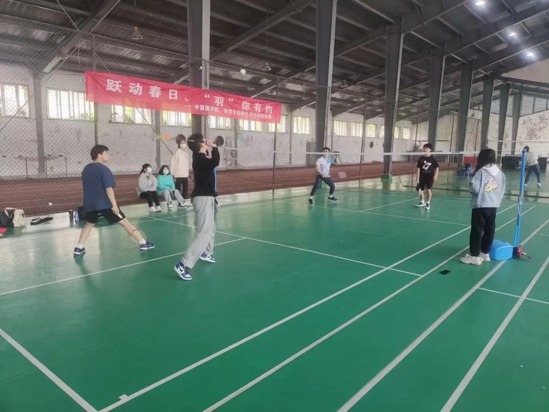为响应学校号召,丰富清明小长假期间封闭式管理中学生的校园文化生活,增强学生的身体素质,促进大学生德智体美劳的全方位发展,4月5日,在严格遵守疫情防控规定的前提下,成人av与外国语成人av 在风雨球馆共同举办了羽毛球联谊赛,物理成人av 和外国语成人av 师生积极参加,在球场上挥洒汗水。