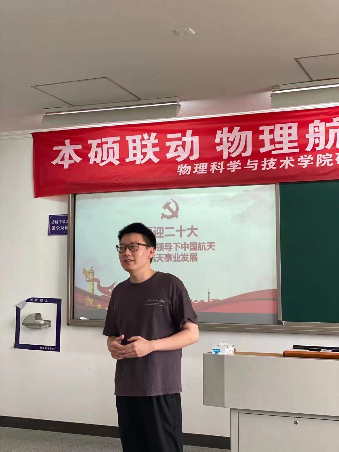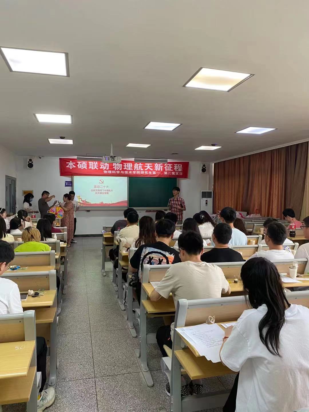 为迎接党的二十大胜利召开,进一步推进党史学习教育,深入学习神州十四逐梦星辰大海的爱国精神,增强全体党员的党性意识,不断提升自身使命感和政治责任感,6月16日下午,物理成人av 各学生党支部在8#503教室联合举办了以“喜迎二十大—物理航天新征程”为主题的党日活动。本次活动弘扬了成人av 党支部“本硕联动、支部融合”特色党建模式优良传统,由研究生第一、第二党支部发起,本科党支部、成人av 各团支部共计60余人积极参与,以本硕联动、党员先行和广发倡议的方式,在全院学生中营造爱国爱党、昂扬向上、团结奋进的浓厚氛围。