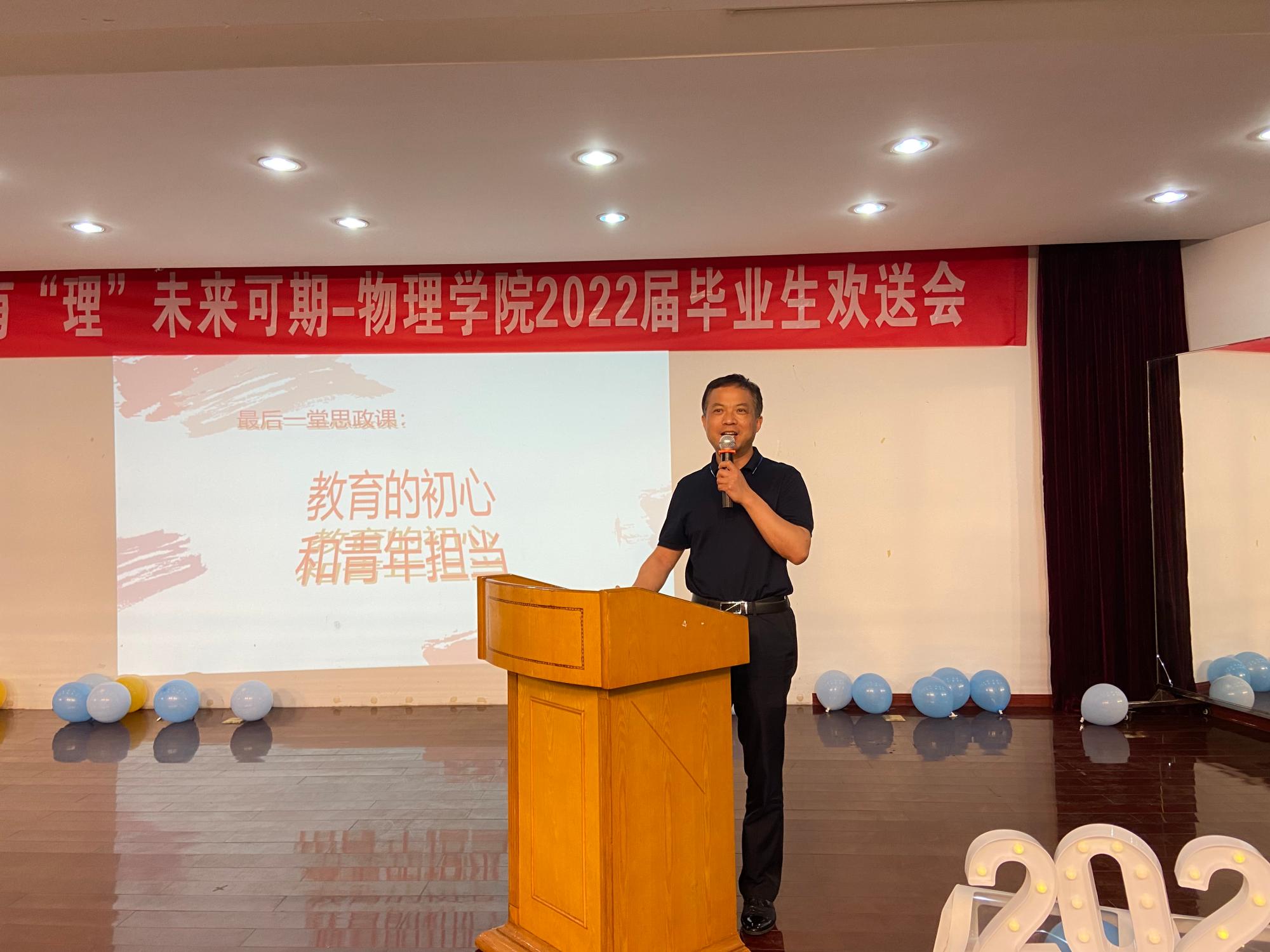 时光荏苒,又是一年栀子花开,在这个不平凡的六月,物理成人av 师生欢聚一堂,为即将毕业的物院学子举行欢送会,共同上最后一堂思政课,一起“清风启程向未来”。