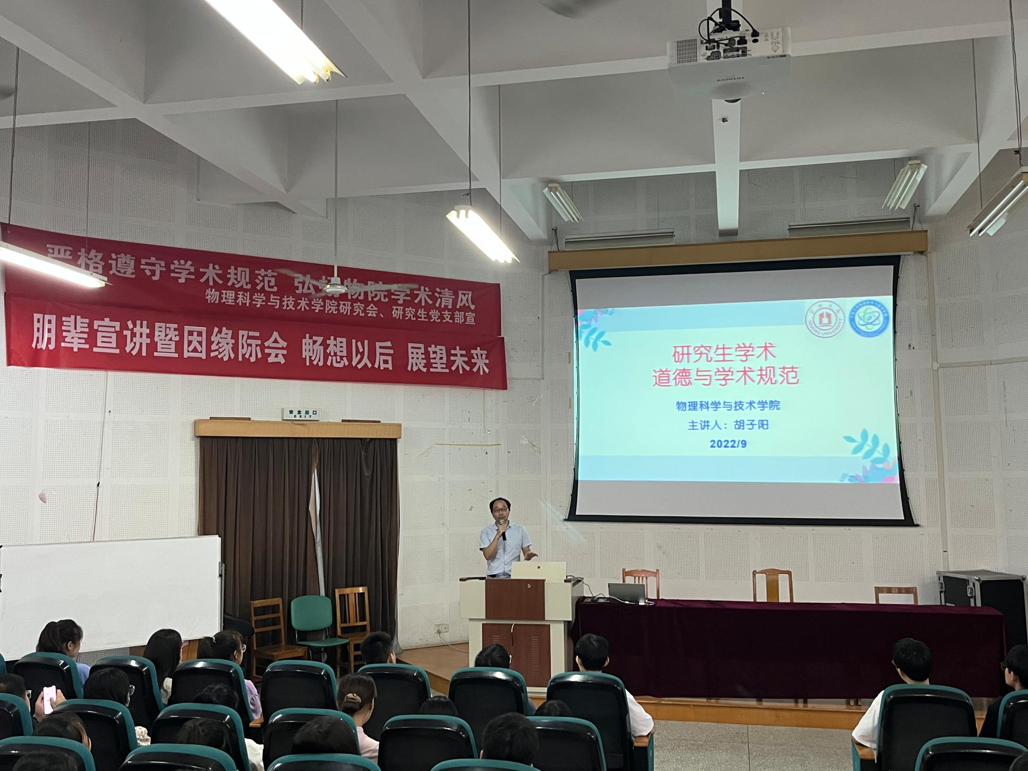 为进一步加强物院研究生学术道德建设,遵守科学道德和学术诚信,杜绝学术不端行为,营造良好的学术氛围和制度环境。9月23日,物理成人av 在龙赛报告厅举行“严格遵守学术规范、弘扬物院学术清风”为主题的讲座活动。本次活动特别邀请了党委委员胡子阳教授进行讲座,22级硕士新生参加此次活动。