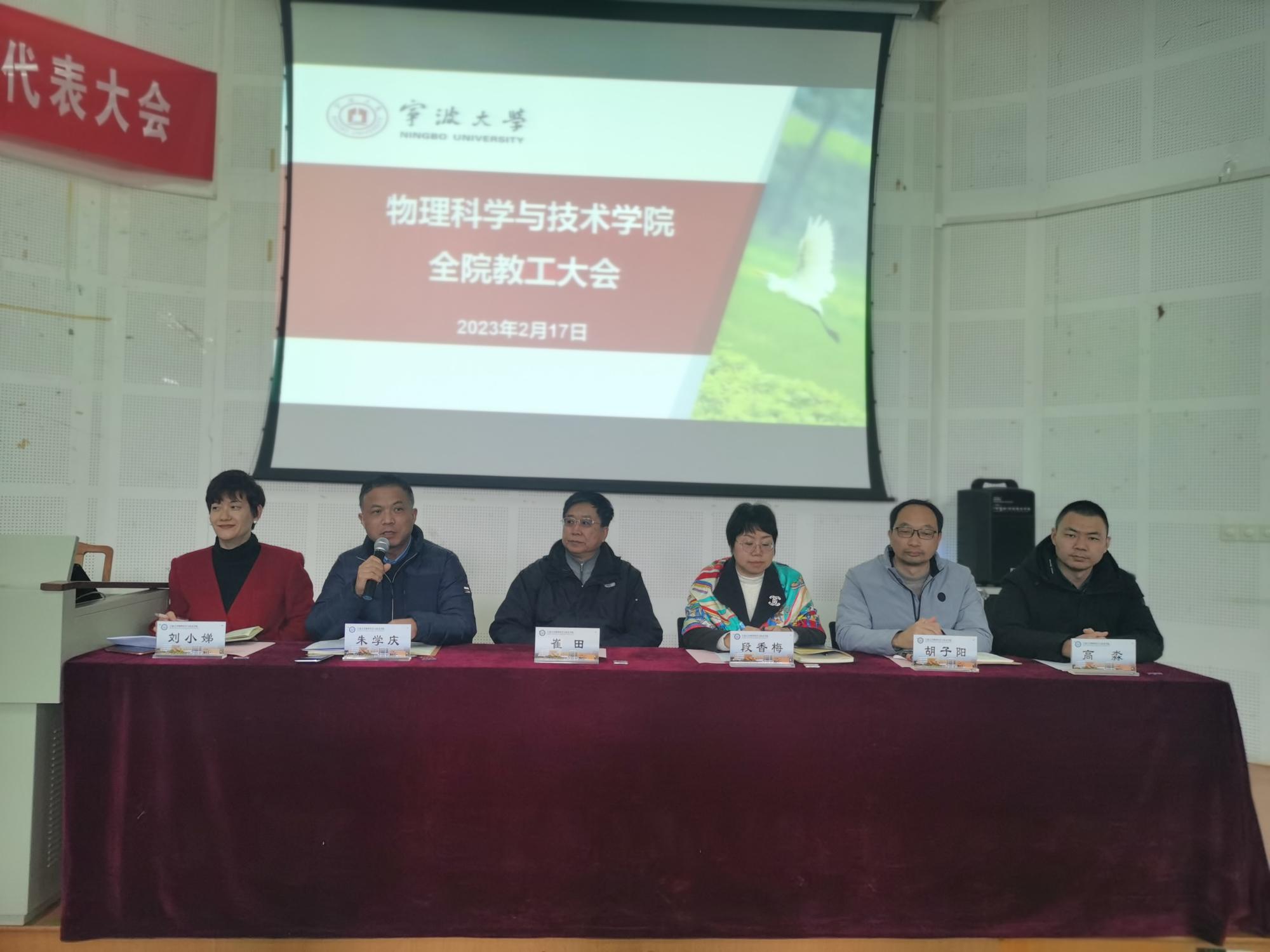 2月18日,物理成人av 召开新学期全院教职工大会,会议传达了学校2023年寒假中层领导干部学习扩大会精神,并部署了下阶段成人av 各项工作任务。会议由院党委书记朱学庆主持。
