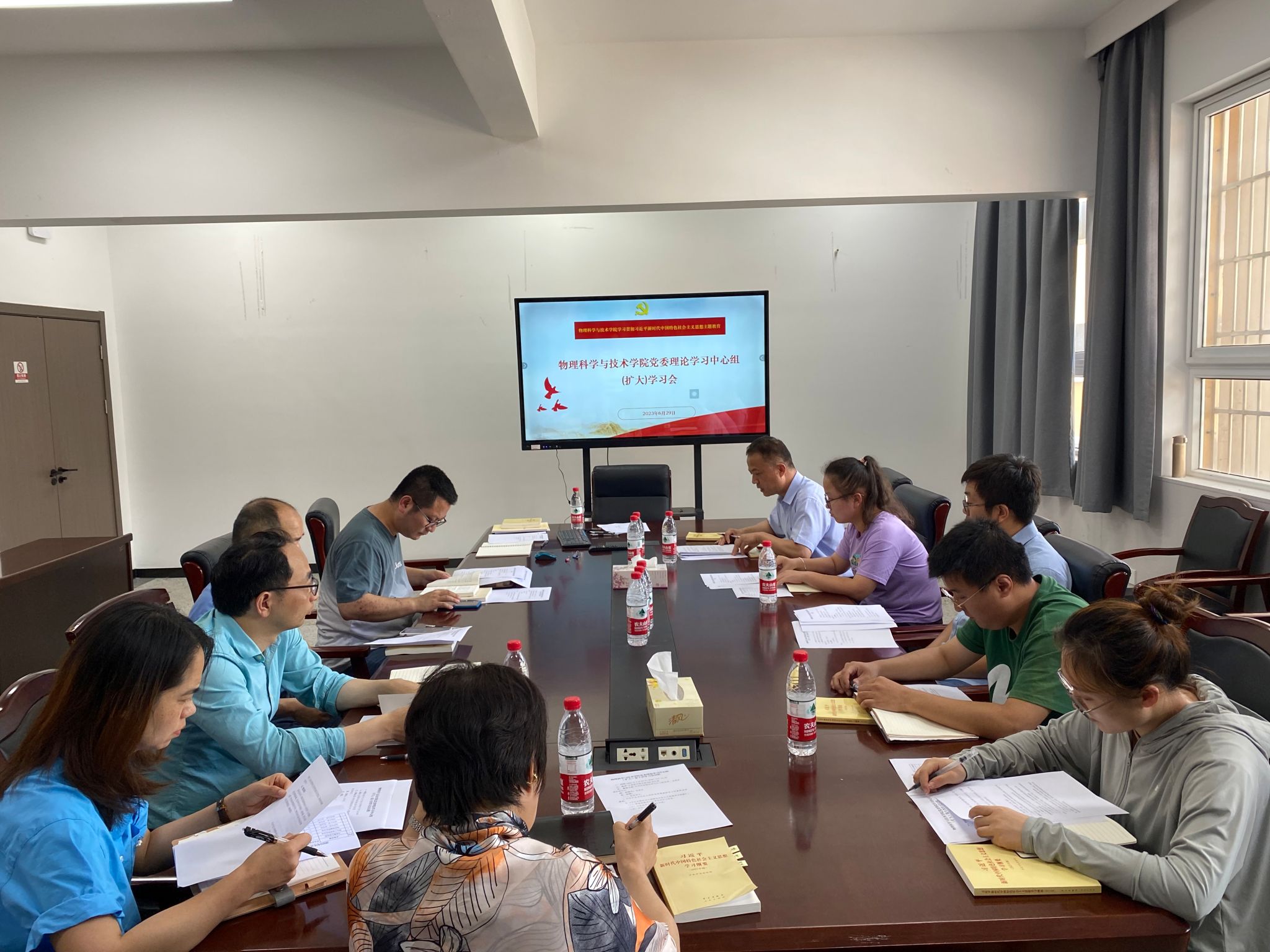 6月29日,成人av 在龙赛理科楼北楼228“党员之家”召开党委理论学习中心组2023年第11次集中学习(扩大)会。会上学习传达了习近平总书记在文化传承发展座谈会上的重要讲话精神,同时围绕“建设社会主义文化强国”主题开展《习近平新时代中国特色社会主义思想学习纲要》集中学习,成人av 党委理论中心组成员和各党支部书记参加了此次会议。