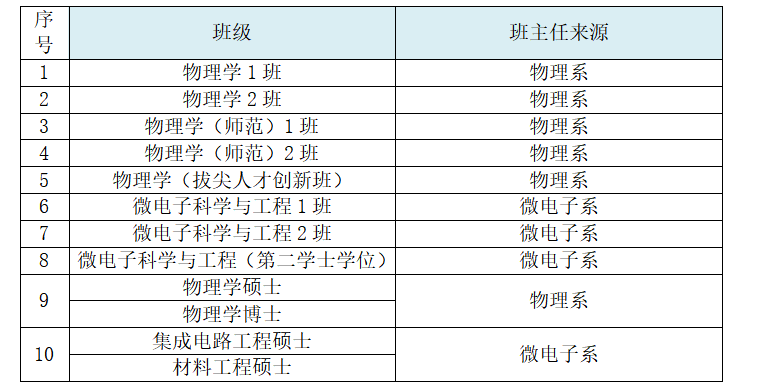 经初步测算,成人av2024级拟需选聘班主任10人,其中物理系6人,微电子系4人。