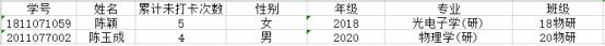 根据学校疫情防控要求,为了进一步加强学校管理,严肃校纪,教育本人,警示他人,经成人av 研究决定,特对上一周(11月2日-11月8日)内,累计四次未及时进行健康打卡签到的同学予以通报批评。具体名单如下: