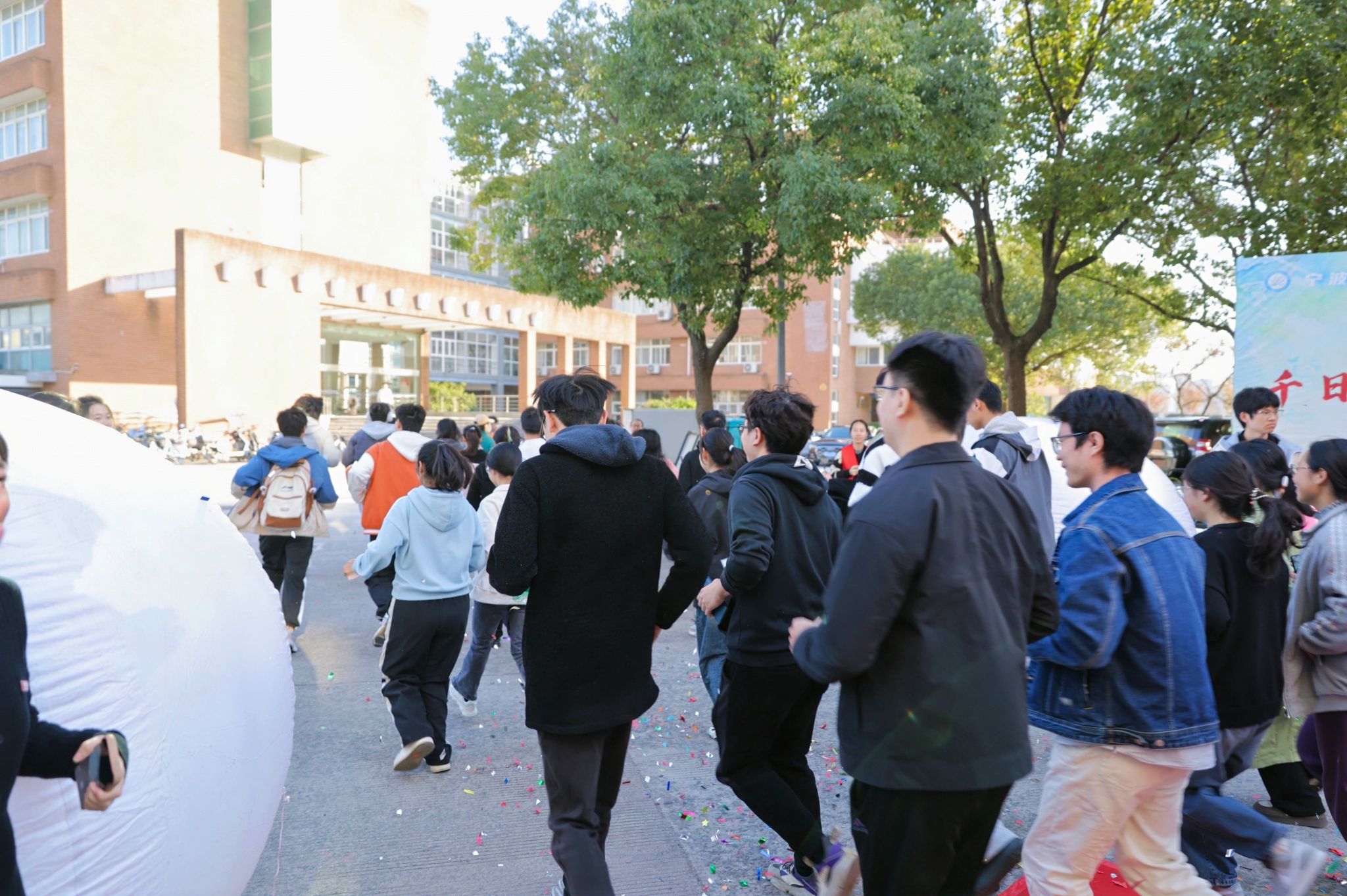 当日下午来自十余个成人av 的师生和返校的物院校友们共计200余人齐聚于龙赛理科楼前,蓄势待发;工作人员们有条不紊,一切准备就绪,大家都以饱满的热情迎接即将到来的活动。在彩带飞舞和在礼炮齐鸣中校长蔡荣根院士宣布彩虹跑开跑。随着蔡校长的一声令下,参与者们一齐冲出起跑线、奔向各个活动打卡点。