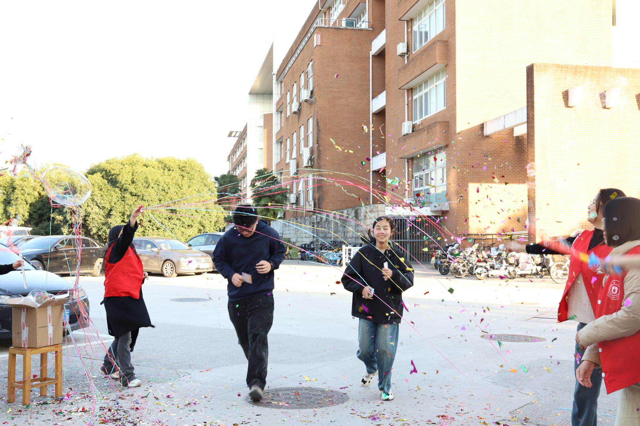 在奔跑与欢笑的交织中,校友和同学们抵达了终点,一场打翻调色盘的派对徐徐展开,人们纷纷抛洒彩带加入这场五彩斑斓的庆祝盛宴彩带在空中舞动,为天空披上最灿烂的色彩;呼喊中释放出内心的欢乐,让生活和青春展现出更多的活力与绚烂。在缤纷彩虹的绚烂中,大家纷纷主动捐献爱心,为贵州兴仁的孩子们传递善意。在这一刻,彩虹跑的内涵得以完整,真正成为了师生朋友们放松身心和传递温暖的桥梁,师生也在奔跑和爱心传递中完成了一场教育的闭环。