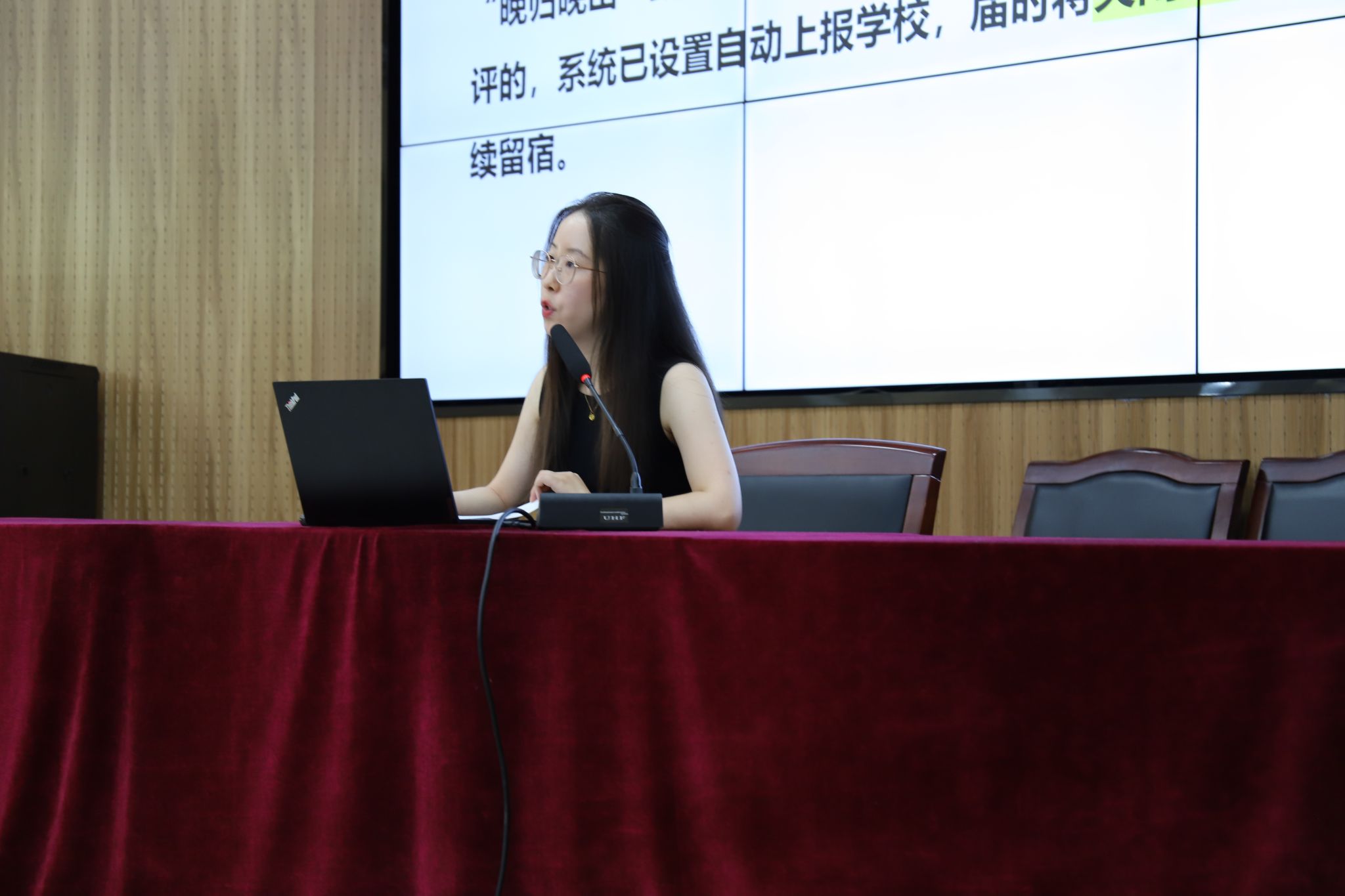 会议由辅导员叶芷毓主持并主讲,她首先向暑期选择留校进行科研、学习或备考的同学们表示慰问,并着重强调了暑期安全稳定的重要性。她结合近期高校安全案例,围绕以下几个方面进行了详实的安全教育: