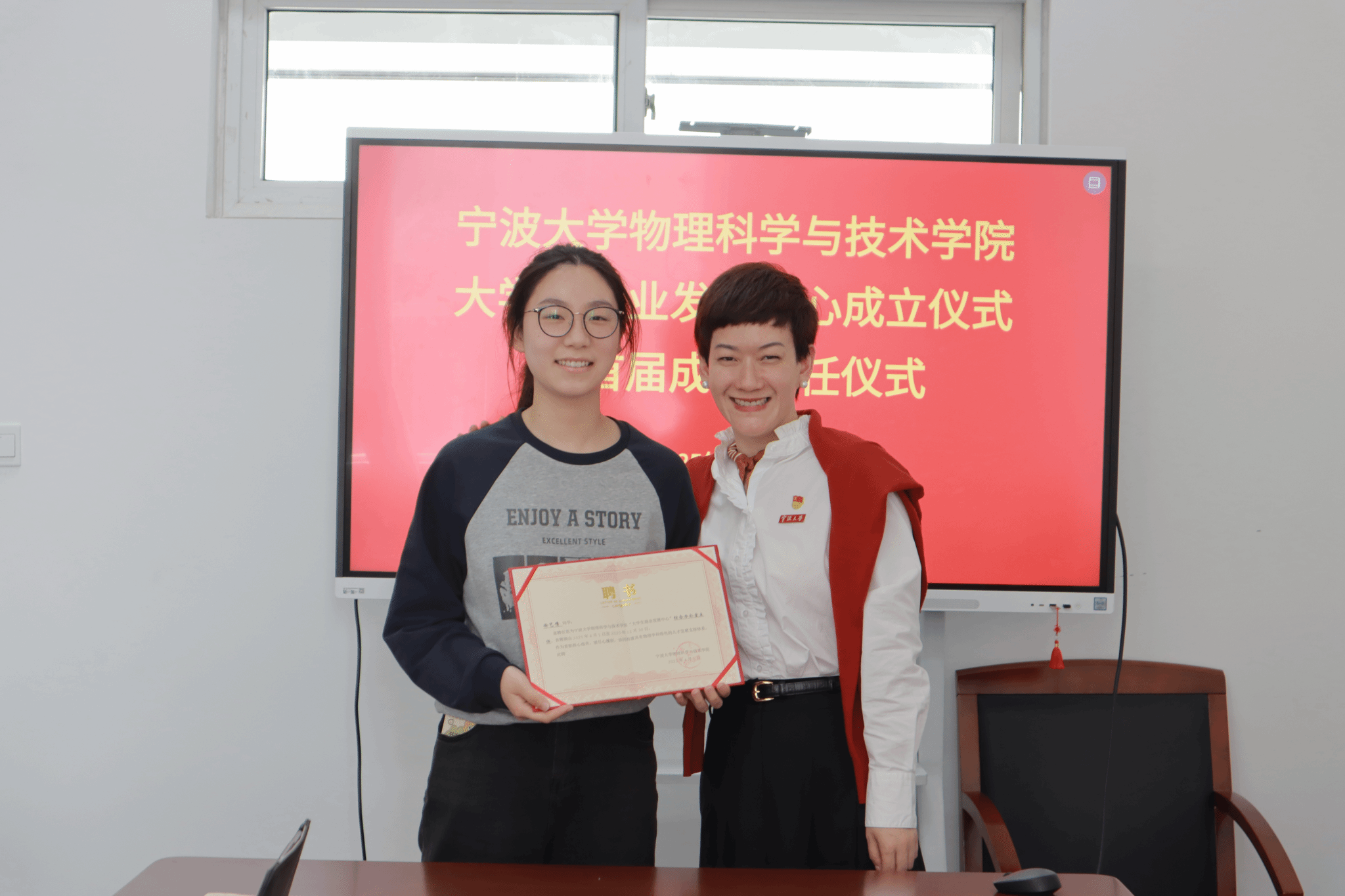 在“大学生就业发展中心”成立仪式上,学工办主任常文豪介绍了中心成立的背景、定位、愿景和计划。随后,刘小娣老师为首届成员颁发聘书并讲话。