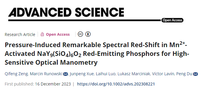 陶瓷发光实验室的研究论文——“Pressure-Induced Remarkable Spectral Red-Shift in Mn2+-Activated NaY9(SiO4)6O2 Red-Emitting Phosphors for High-Sensitive Optical Manometry”。成人av