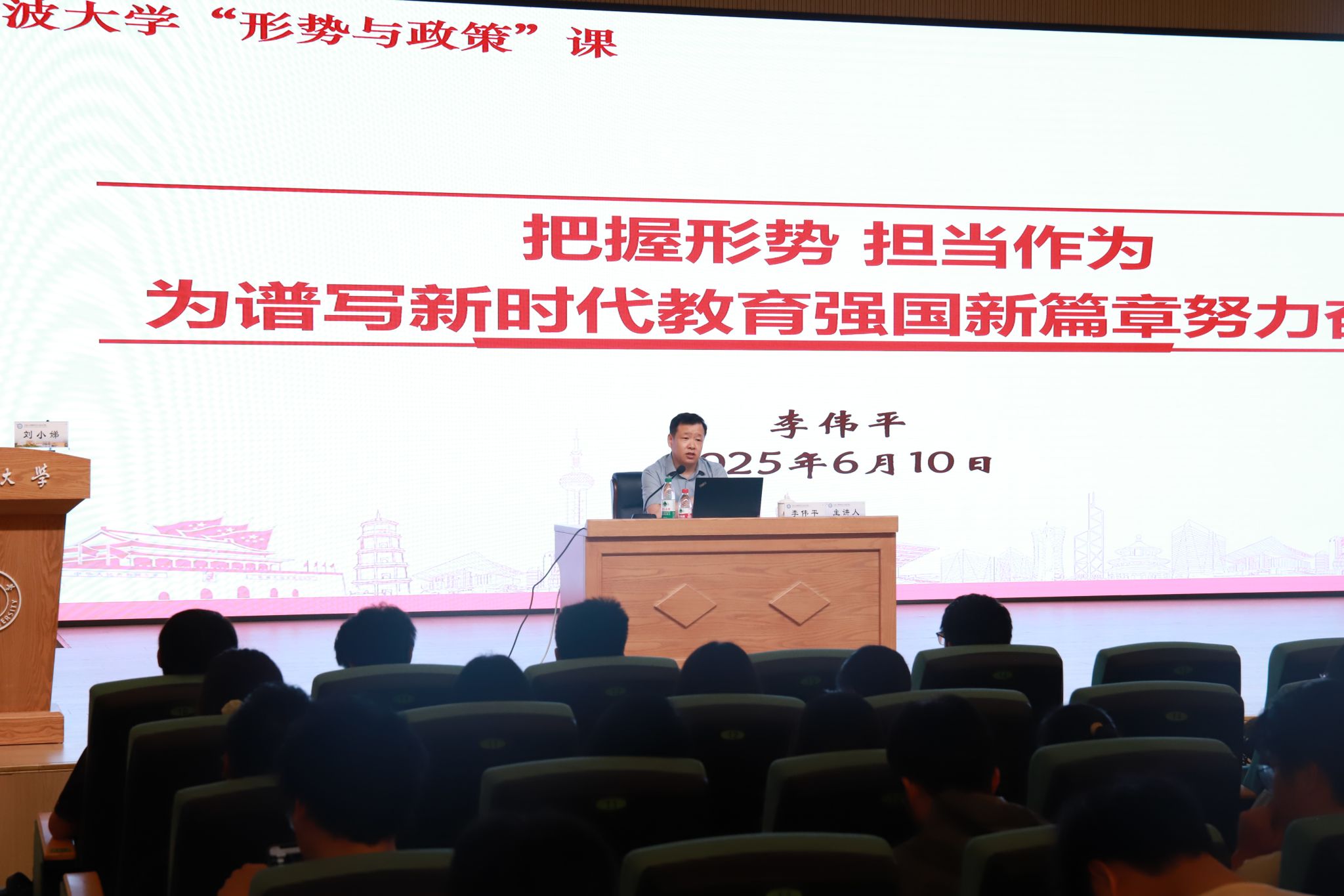 6月10日,李伟平副校长在朱学林报告厅以“把握形势,担当作为,谱写新时代教育强国新篇章”为主题,为成人av